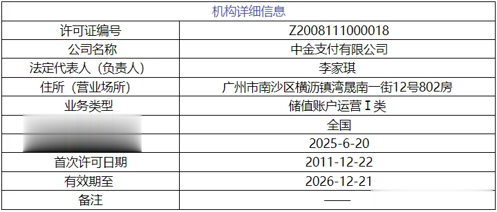 据移动支付网了解,中金支付成立于2010年,是一家专业从事互联网支付的第三方支付机构,2011年获得人民银行颁发的《支付业务许可证》,获准开展互联网支付业务。支付业务类型从新分类后,变更为“储值账户运营Ⅰ类”。